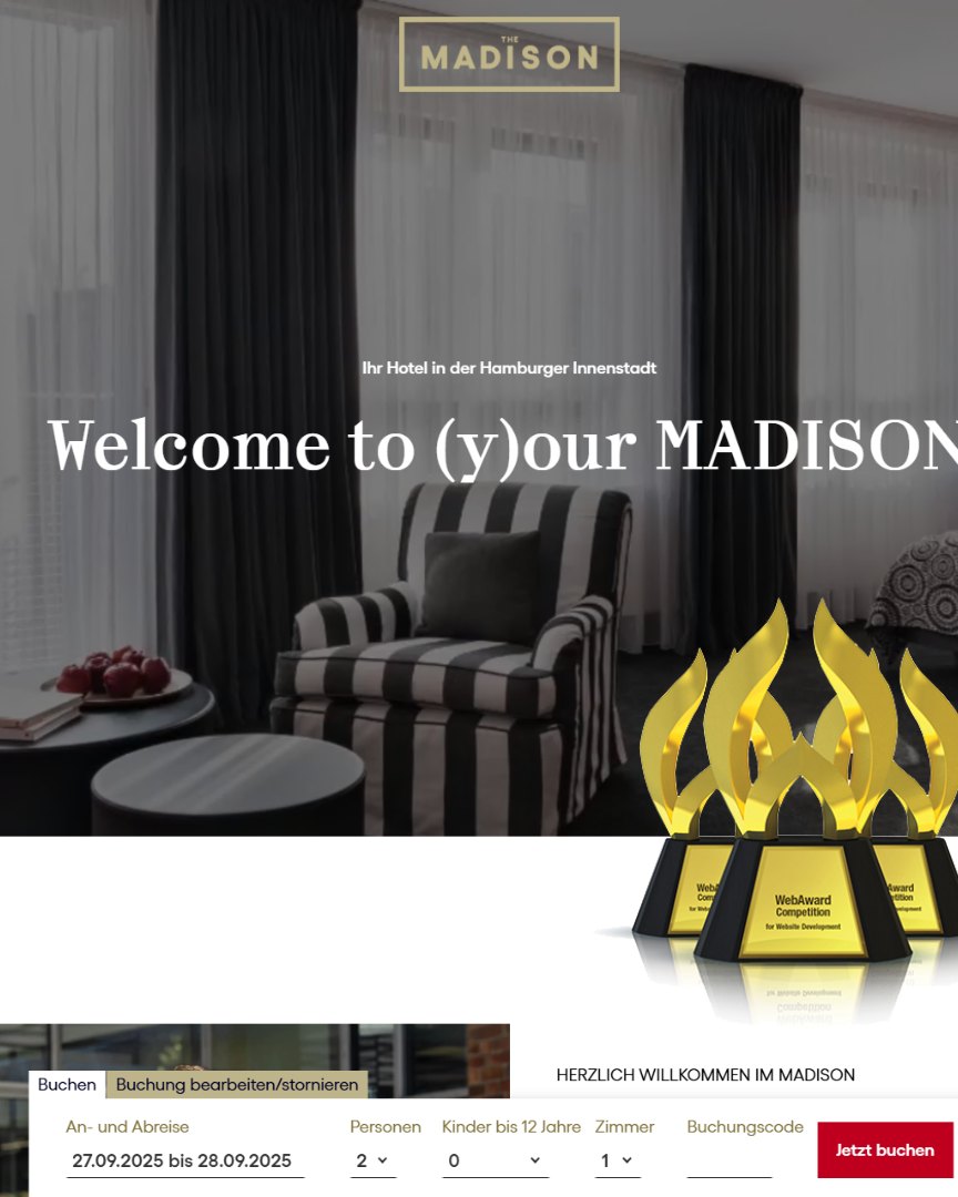Das MADISON Hotel liegt zentral im Herzen Hamburgs zwischen der St. Michaelis Kirche, den Landungsbrücken und der Elbphilharmonie